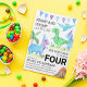 Dê vida à quarta festa de aniversário do seu filho com o nosso belo convite para dinossauros coloridos. Apresentando dinossauros pintados à mão, belas festas, palmeiras e verde vibrante, este convite destaca-se para qualquer celebração. A tipografia negra moderna e limpa em branco facilita a leitura dos detalhes das festas. Adicione o nome, a idade e as informações do evento do seu filho para torná-lo verdadeiramente pessoal. Perfeito para o seu pequeno e amoroso dinossauro.