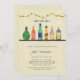 Os convites de chá de casamento de estoque apresentam licor de aquarela e garrafas de vinho em uma prateleira com luzes de cordas suspensas acima. (Arte original de Shelley Winters Design)