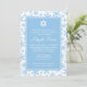 Um convite de Bat Mitzvah com o tema do inverno com um padrão de floco de neve em azul e branco. Perfeito para uma festa de Bat Mitzvah no inverno. Personalize facilmente!