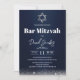 Convites Judaicos Estrela de Davi Bar Mitzvah Azul Marinho e Prata Modernos.