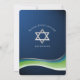 Estrela Prateada de David e convite para o Bar Mitzvah, design de onda azul verde.
