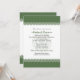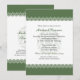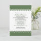 Pequenas Estrelas de David formam as bordas verdes-oliva em escala nas bordas superior e inferior deste convite para Bares/Bat Mitzvah. As informações personalizadas vão no meio da impressão contra uma estrela verde clara de David. O gráfico é repetido no verso, atrás de informações extras que podem ser personalizadas ou excluídas para deixar o vazio traseiro. Disponível em cores alternativas com produtos correspondentes.