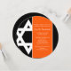 Um Bar redondo cor de laranja e preto Mitzvah convite, com uma estrela branca de David. Produtos correspondentes disponíveis. Personalize facilmente o seu evento.
