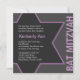 Um convite moderno do Bat Mitzvah que mostra as palavras Bat Mitzvah ao lado e Estrela roxa de David.