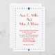 Branco com estrelas azuis Marinhos ao longo dos lados, no topo e no fundo deste convite de inspiração patriótica de 1940, Usamos um texto vermelho brilhante para o olhar verdadeiramente americano. Basta escolher o menu de seleção à direita e começar a alterar as informações mostradas para as suas. Uso para Casamentos, festas, jantas ou galas.
