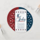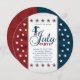 Na moda para convites para o seu 4º de julho, comemorando o Dia da Independência Americana, com as cores patrióticas dos Estados Unidos, vermelho, azul e branco, em um padrão estrelado com estrelas. Os detalhes de sua celebração estão em vermelho e azul em uma faixa branca. Personalize o texto com os detalhes de sua própria celebração. As estrelas vermelhas, brancas e azuis também criam uma borda na parte superior e inferior da faixa de texto. Se precisar de assistência para a sua personalização, entre em contato conosco através da nossa loja CelebrationBazaar.
