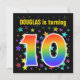 Este design divertido, excitante e vibrante apresenta um padrão colorido em forma de estrela, juntamente com o número "10", que apresenta um espectro multicolorido como o arco-íris ou padrão de gradiente. O nome na frente pode ser personalizado. A parte traseira contém detalhes personalizados sobre a parte. Convites de festas de aniversários como este podem ser enviados para convidar convidados para uma festa de aniversário que comemora o décimo aniversário de alguém. [~Z0000349]