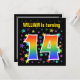 Este design vibrante, divertido e entusiasmante apresenta um padrão colorido de estrelas, junto com o número "14", que tem um espectro de inspiração multicolorido no arco-íris ou um padrão de gradiente. O nome na frente pode ser personalizado. A parte traseira apresenta detalhes personalizáveis sobre a parte. Convites de festas de aniversários como este podem ser enviados a potenciais participantes para uma festa de aniversário que se realiza para celebrar o décimo quarto aniversário de alguém. [~Z0000349]