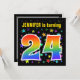Este design divertido, excitante e vibrante apresenta um padrão colorido de estrelas, junto com o número "24", que possui um espectro multicolorido como o arco-íris ou padrão de gradiente. O nome na frente pode ser personalizado. A parte traseira contém informações personalizáveis sobre a parte. Convites de festas de aniversários como este podem ser enviados para convidar convidados para uma festa de aniversário que se realiza para celebrar o vigésimo quarto aniversário de alguém. [~Z0000349]