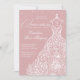 Faça uma declaração corajosa e elegante com o nosso rosa pincelado Quinceañera Dress Celestial Moon Star Invitation, um design exclusivo para a Paperia de Moodthologia. Este convite marcante apresenta nossa trabalho de arte original desenhada à mão de um espantoso vestido Quinceañera, formado lindamente com flores delicadas, botânicos folhosos, luas em crescente e estrelas cintilantes - tudo ilustrado para criar a silhueta de um vestido de Quinceañera, gracioso e de inspiração noturna. Perfeito para temas celestes, à luz do luar, ou "black-tie Quinceañera". Trabalho de arte e design por © Moodthology Papery.