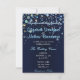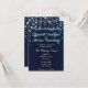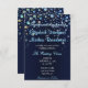 Estrelas de bolhas com um convite de casamento azul escuro.
