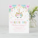 As Flores de Brilho Douradas da Festa de aniversário Unicorn são convites - decorados com flores de aquarela e brilho dourado.
