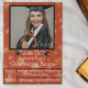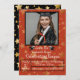 Estrelas de ouro vivas e divertidas com fundo vermelho num convite de festas de brunch de graduação. Substitua e personalize a foto do seu formando e personalize todos os detalhes do seu formando e da sua festa no início deste convite. O reverso desta carta tem um fundo preto dramático com estrelas douradas.