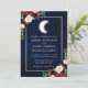 Convite Celestial de Casamento. Céu azul de água com estrelas e a lua. Borgonha azul rosa azul brilhante. Greenery Eucalyptus Sai. Dourado quadro. Foto de volta.
