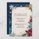 Prata, ouro e estrelas de Natal azul-prateado combinam-se com flores vermelhas e azuis contra um céu noturno com estrelas e flocos de neve neste belo convite de festas de Natal. Brilhante e festivo, é perfeito para todas as suas reuniões de férias! Remova o texto, o que seria perfeito para uma newsletter de feriado.