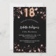 Um fundo preto clássico, decorado com estrelas douradas rosa. Personalize e adicione um nome e detalhes da parte. O número 18 é escrito com um script de estilo de balão.