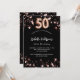 Um fundo preto clássico, decorado com estrelas douradas rosa. Personalize e adicione um nome e detalhes da parte. O número é escrito com um script de estilo de balão.