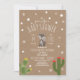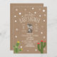 Um convite para o chá de fraldas de inverno com ilustração de um filhote de lobo sobre um estoque de cartolina inspirado em estrelas e ilustrações de cacto. Personalize o texto em branco.