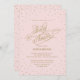 Pequenas estrelas de confete brilham e brilham num efeito de brilho dourado à volta deste simples e doce convite de chá de fraldas rosa e dourado, com um guião de efeito de brilho dourado, "Chá de fraldas". Perfeito para um chá cômico e feminino! Arte original de Colleen Michele. Por favor, note-se que não existe um verdadeiro efeito de brilho de ouro ou de folha de ouro nas estrelas e no guião; não será utilizada qualquer brilho, folha de ouro ou tinta metálica neste convite.