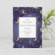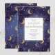 Um convite de casamento celestial lindo com detalhes em dourado, luas e estrelas num fundo azul meia-noite e tipografia moderna e elegante. Concebido por Thisisnotme©