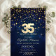 Convites Estrelas Douradas Elegantes Marinho azul 35ª Festa