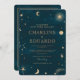 Marinho Místico Dourado Estrelas Lua Astronomia Convite para Casamento