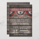 Festa de solteira com tema de 4 de julho, bandeira americana, vermelho patriótico, branco e design de estrelas azuis no campo de safra rustica ocidental, madeira de celeiro, fundo impresso de madeira com fontes elegantes e antigas. Perfeito para Festas de solteira de temas de campo, fazenda, fazenda, caserna! Este convite giro e divertido é o excelente ano redondo para primavera, verão, outono ou festas de solteira de inverno!