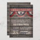 Convite de festas para uso doméstico com tema de 4 de julho, bandeira americana, vermelho patriótico, branco e azuis e design de listras no oeste do campo de colheita rústica, madeira de celeiro, fundo impresso de madeira com fontes elegantes e antigas. Perfeito para o país, fazenda, fazenda, tema de caserna Festas de Aquecimento Doméstico! Este convite giro e divertido é o excelente ano redondo para primavera, verão, outono ou nova casa de inverno, celebração da casa!