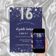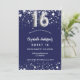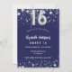 Um convite moderno, na moda e glamouroso para uma doce festa de aniversário 16, 16. Um fundo azul marinho, decorado com estrelas de falso prata. Personalize e adicione seu nome e detalhes da festa. O número 16 é escrito com uma fonte no estilo do balão.