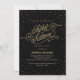 As estrelas de efeito brilhante de ouro brilham nas nuvens de confete à volta desta bela convite de aniversário de 16 e 16, preto de veludo, com um guião de efeito de brilho dourado, "Dezesseis Doce". Perfeito para um rico de chic noturno! Arte original de Colleen Michele. Por favor, note-se que não existe um verdadeiro efeito de brilho de ouro ou de folha de ouro nas estrelas e no guião; não será utilizada qualquer brilho, folha de ouro ou tinta metálica neste convite.