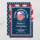 Para o garoto americano que está celebrando seu primeiro aniversario. "Estrelas, listras e diversão", todo convite de aniversário temático americano. Com estrelas e listras em vermelho, branco e azul. Este convite de festas temático americano pode ser personalizado com a inclusão do seu próprio texto para se adequar ao seu evento. Ideal para uma festa de aniversário temática americana.