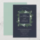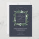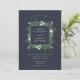 Nosso convite para casamento com a Greenhouse envolve seus nomes com uma elegante praça de folhagem verde, folhas botânicas e pequenas flores brancas. Personalize com seus detalhes de casamento em letras brancas clássicas com um sotaque de escrita de caligrafia. Um fundo azul rico em marinho fornece um pano de fundo impressionante para os detalhes da sua cerimônia em branco nítido. Uma bela escolha para casamentos noturnos de verão, núpcias de outono ou outono, ou casamentos no inverno de neve.
