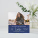 O eterno e o design clássico começam com a fotografia do formando. A classe de 2023 está abaixo e em destaque no centro. Os detalhes da festa de formatura rodeiam-no. As fontes ertas clássicas e itálicas são fáceis de ler e de personalizar. Texto branco sobre fundo azul escuro é uma combinação de eternos.