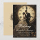 Esta carta de convite para casamento do tema vintage apresenta um design encantador que captura o amor eterno de uma noiva e noivo felizes. A frente da carta mostra a noiva e o noivo em frente a um relógio, simbolizando seu amor eterno. A parte de trás do cartão apresenta uma design de tatuagem cardíaca, acrescentando ao sentimento romântico do cartão. Com texto personalizável, é a maneira perfeita de anunciar sua data de casamento com um toque de charme vintage. Este é mais um Design original de 100% de Hamster.