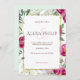 Convide seus entes queridos para comemorar seu dia especial com este sofisticado convite para o casamento, projetado para evocar elegância e romance do eterno. Apresentando uma fina borda floral em tons de magenta e marfim profundo, o escamoso quadro florescente é um design central minimalista e refinado. A tipografia combina serifas modernas e fontes clássicas, criando um equilíbrio harmonioso entre elementos contemporâneos e tradicionais. Uma sutil dica de cor-de-rosa na ampersa adiciona um toque de capricho ao layout, enquanto uma fina borda de ouro empresta um acabamento luxuoso. Perfeito para casais que buscam um convite elegante e elegante que incorpore calor e sofisticação. F011