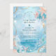 A soft, luminous coastal wedding design inspired by sunlight over calm waters. Delicate watercolor blues blend with floating starfish, gentle florals, and subtle golden accents to create an airy, dreamlike atmosphere.