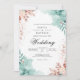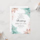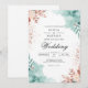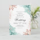 Delicate watercolor washes in teal and blush create a dreamy, artistic backdrop for a romantic union. Lush botanical accents frame this design with an air of sophisticated charm.