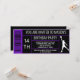 Convite de aniversário de basquete com jogador de basquete em um fundo de etiqueta de caixa de calçado preto e roxo. Basta adicionar os detalhes do evento.