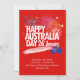 Convite de Feriado Cartão Design Moderno. Coleção EU AMO AUSTRÁLIA. Letreiro "ALEGRIA! AMOR! PAZ!" e "Feliz Dia da Austrália 26 de Janeiro 20XX". Bandeira da Austrália, Mapa da Austrália, Coração, estrelas e fogos de artifício. Austrália Divertida, Festa do Feriado Nacional Patriótico para design de presentes e roupas. Convites e Papelaria > Convites e Anúncios. Decoração de Evento de Festival. Viagem, Viagens, Boa Viagem, Festa na Praia, Aniversário. Design com modelo de texto. Personalize-os adicionando o nome ou texto de desejos.