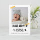 Anúncio de nascimento de bebê adorável apresentando sua foto favorita do seu novo bebê. Personalize esta design com a sua foto, o primeiro, o meio e o sobrenome do bebê, data de nascimento, hora, peso e comprimento. Este anúncio de nascimento do bebê reverte para um design de papel manchado.
