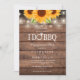 Luzes de cordas bonito e girassóis decoram seus detalhes especiais de celebração de festas de noivado, dispostos em tipografia elegante em um fundo de madeira rústica. O reverso apresenta as iniciais do seu monograma num girassol correspondente. Projetado por Thisnotme©