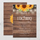 Lindas luzes de corda e girassóis decoram os detalhes da celebração da sua festa de noivado em tipografia elegante sobre um fundo de madeira rústica. O verso apresenta suas iniciais monogramadas dentro de um girassol correspondente. Projetado por Thisisnotme
