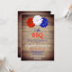 Eu tenho CHURRASCO com florais patrióticos, vermelhos, brancos e azuis contra um fundo de madeira rústica