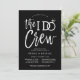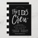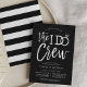 Uma reunião é devida para a tripulação do Ido. Que todos na sua festa de casamento saibam diretamente que os seus serviços são necessários para um janto de ensaio com este cartão de convite divertido mas formal. O design apresenta as palavras "A equipe que eu faço" num estilo elegante e moderno de escrita. A palavra 'do' apresenta um anel de diamante espumante em vez da letra 'O' para significar o casamento da noiva e do noivo. No verso estão as listras brancas e pretas. Ao redor deste design são pontos para suas informações e detalhes de texto exclusivos.
