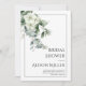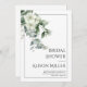 Este chá de panela apresenta ramificações de eucalipto no canto superior esquerdo com delicadas flores brancas e uma fina borda preta. O texto do convite é apresentado em tipografia eco-ativa. A fina borda negra do convite complementa perfeitamente o tema floral, criando um olhar coeso e visualmente atraente para o evento.