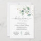 Um chá de fraldas por correio é perfeito para aqueles que não podem estar com entes queridos, mas que ainda querem chá para que os pais estejam com amor e presentes para se prepararem para a chegada do seu bebê. Este chá de longa distância por convite por e-mail apresenta uma ilustração em aquarela de folhas de eucalipto e elementos de ouro com o poema de solicitação "Encontrar entes queridos pode ser tão duro. Então, se você quiser, envie seu presente ou cartão por e-mail. E à medida que eles chegam dia a dia, eles vão sentir todo o seu amor de longe." Personalize com seu texto. Clique em "Personalizar mais" para editar o estilo, o tamanho e a cor da fonte, se desejar.