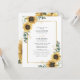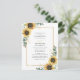 Convite Floral de Casamento Geométrico com Girassóis de Eucalipto. Crie um convite de casamento econômico moderno com girassóis com este lindo modelo apresentando um belo buquê floral rústico, moldura com efeito dourado geométrico e tipografia simples e moderna.