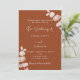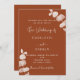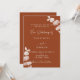 Fundo laranja escuro queimado, decorado com caules de eucalipto, galhos. Personalize e adicione seus nomes e detalhes. Fundo: fundo laranja escuro queimado. Adicione o URL do seu site de casamento ao código QR para que os seus convidados pesquisem mais detalhes/RSVP