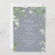 Convocação de Casamento Azul de Dusty, em Eucalyptus Foliage. Tipografia Branca. Ambos os conjuntos de pais listados.