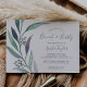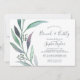 Este brunch de eucalipto roxo e verde e o convite à espuma são perfeitos para um chá de casamento exterior moderno. O simples e elegante design botânico apresenta um verde-aquarela com acentos de lavanda e roxo escuro.